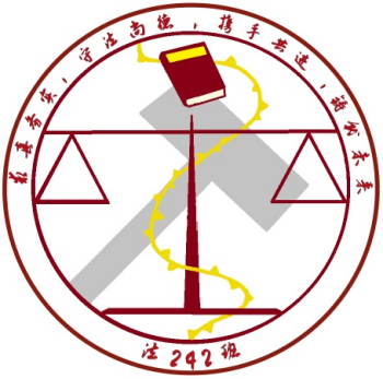 班徽设计解读:法241班徽的设计深刻融合了班训“学法明理,德润人心”的精神内涵。班训“学法明理,德润人心”是一个富有哲理和指导意义的口号,它包含了两个核心部分,分别强调了法律学习和道德修养的重要性。班徽中心的“法”字,以清晰有力的线条呈现,象征着法律的权威与公正,强调了学习法律的重要性和对法治精神的尊重。班徽采用深蓝色作为主色调,蓝色代表着智慧、理性和信任,与法律专业追求的理性思考和公正判断相呼应。班徽不仅是班级的象征,也是同学们共同追求法律精神和道德情操的见证。它承载着班级的价值观和使命感,鼓励每一位成员在法律的道路上不断前行,以法律为准绳,以德行为灯塔,共同维护正义与和平。通过这个设计,希望每位同学都能成为法律的守护者和道德的传播者,用知识和德行影响和改善社会。