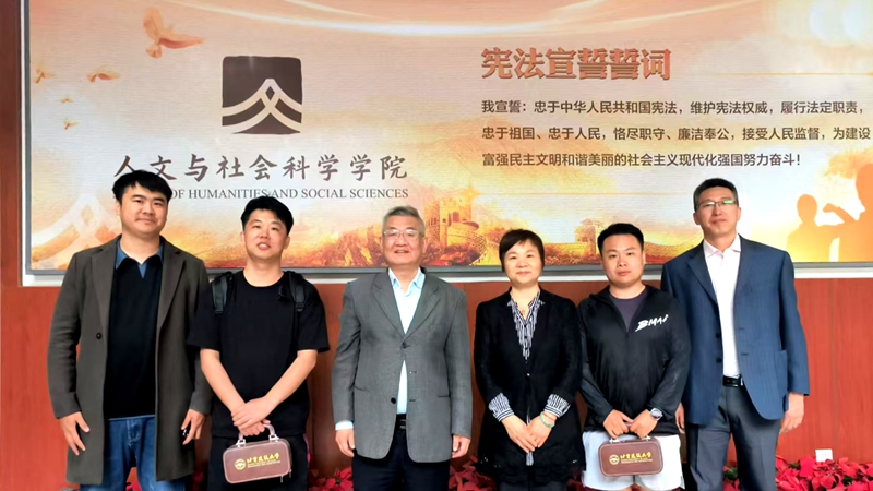 座谈会后,学院党委书记孙冬梅与校友汪鹏、李赛交流