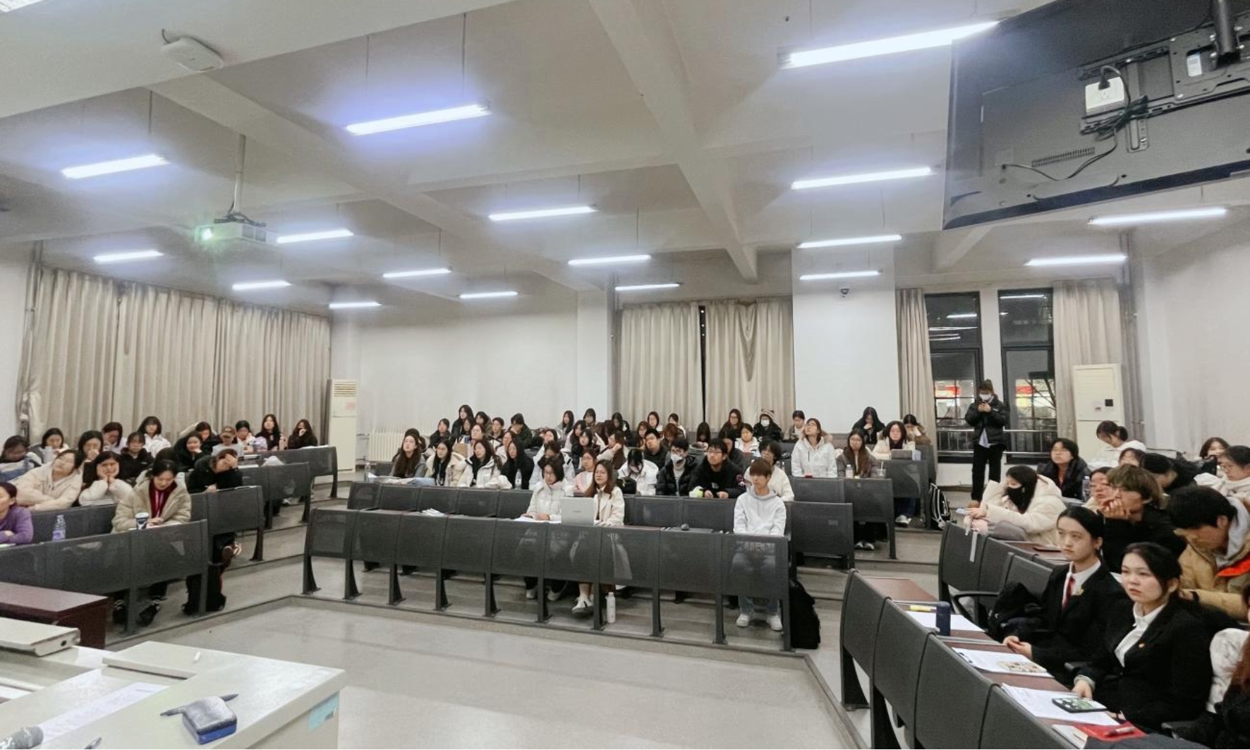 法实221班张乐宜作为学院人文社科协会主席、全国房地产策划大赛一等奖团队第一负责人,她详细介绍了学科竞赛体系和类别,提出了针对法学、社工专业学生的参赛建议,并介绍了目前学院学生参与度较高的比赛的参赛流程。此外,她还分享了自己作为队长参加房地产策划大赛的经历,详细讲述了从选题到备赛、修改、答辩等环节的故事,充实、紧张、偶有波折,却在知识积累、综合素养提升方面收获颇丰,对于入学后正在首次参加各类比赛的大一学生具有启迪意义。