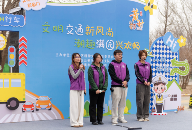 紧接着,“青春船长”普法团队队长吕沂格与北京市公安局大兴分局交通支队新城中队副中队长李梦熙、新兴家园二里党支部书记杜鹏以及外卖小哥代表共同上台,庄严宣读《文明出行承诺书》。这不仅是一份承诺,更是一份责任,号召全镇居民从自身做起,争做文明交通的践行者和传播者。