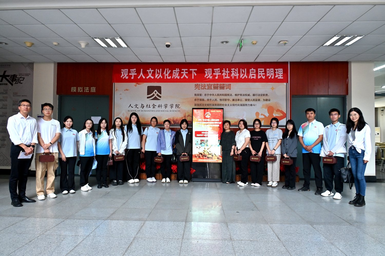 孙冬梅书记为首批宣讲团成员颁发聘书(由左至右:法研24 钱要博、社231 卢钰峥、社231 王馨、社231王思睿、法242 唐瑞凝)