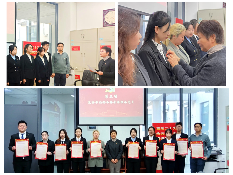 宣誓仪式在气势磅礴的《国际歌》中拉开帷幕,孙冬梅书记亲手为每位预备党员佩戴党徽,并宣读“党委寄语”表达对新发展党员的殷切期望。