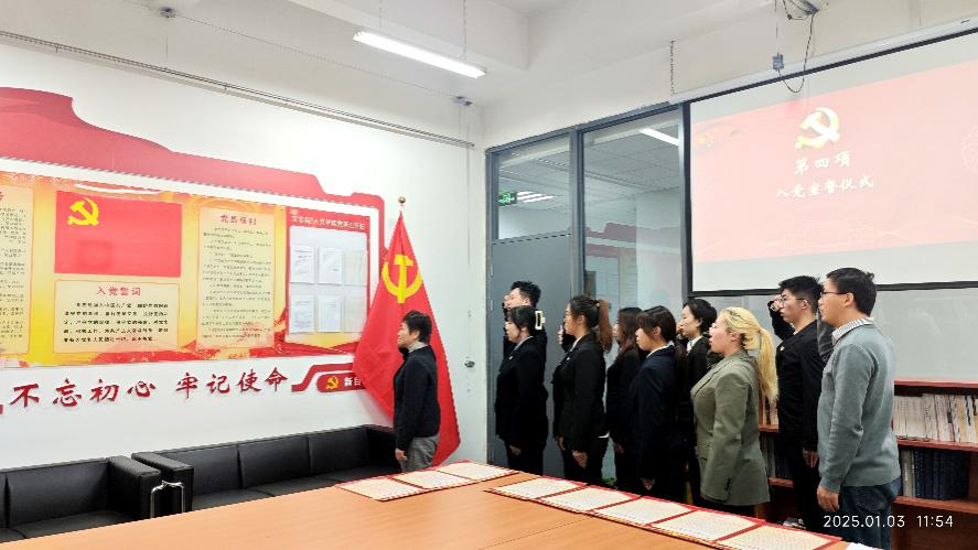 在基D-427组织新党员入党宣誓仪式暨党委书记讲党课活动,党委书记孙冬梅、组织员郑环环、团委书记陈晨及11名新党员参加了仪式,活动由党委副书记曹洪涛主持。