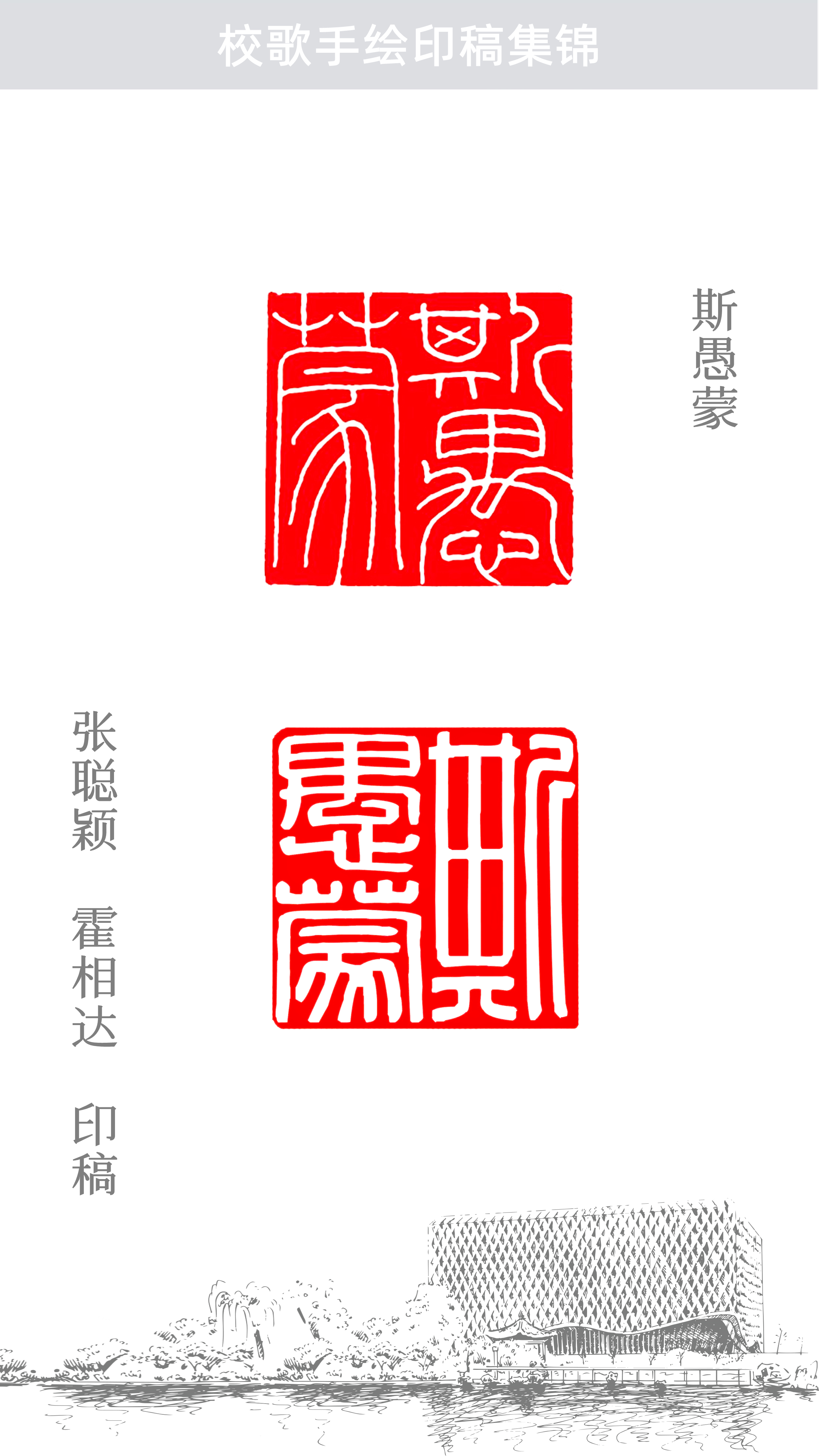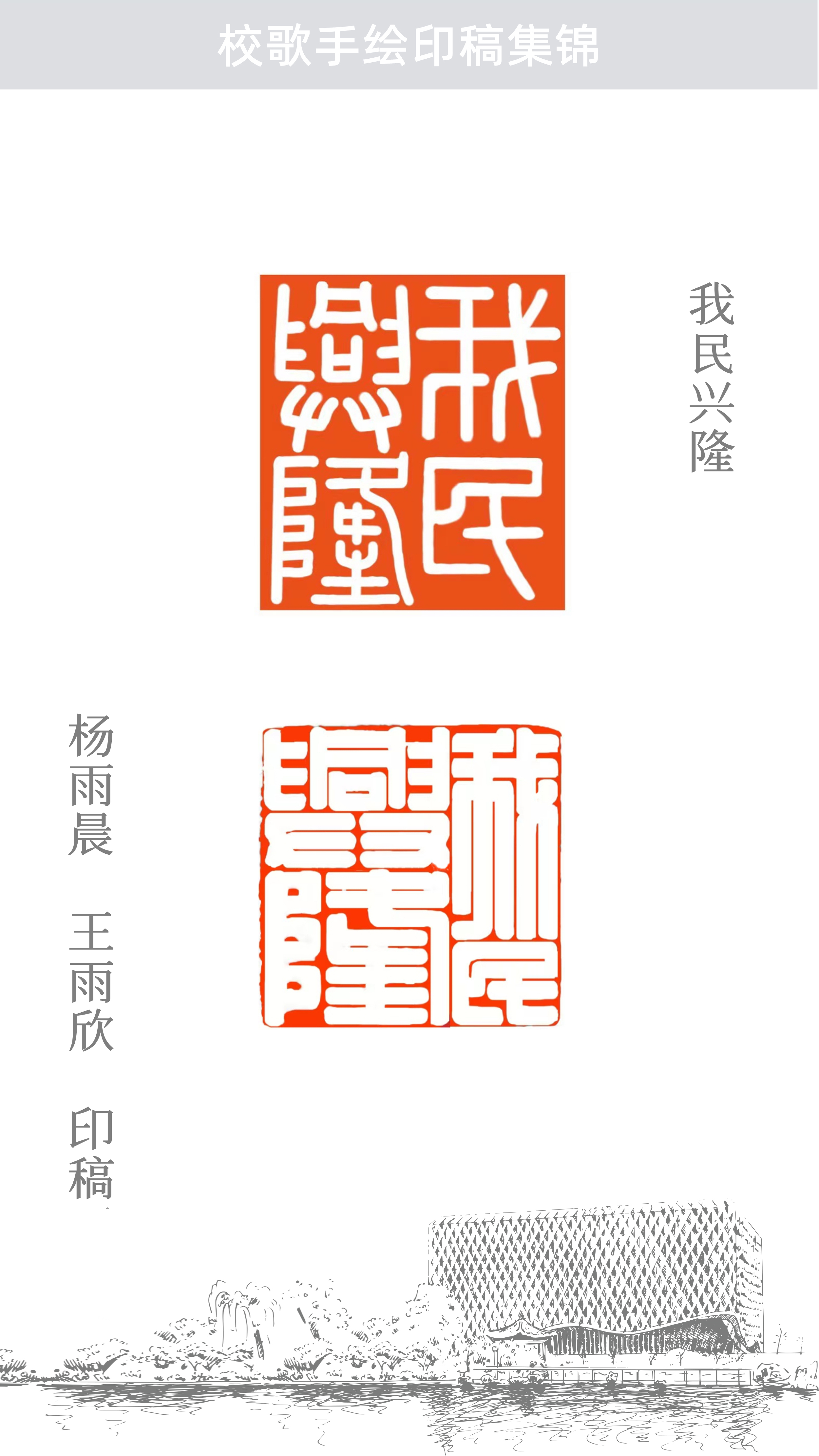 随风潜入夜,润物细无声。艺术创作的过程交织在教与学、课上与课下、书法篆刻与校史文化、历史与现代等信息融合的氛围之中,置身其中,仿佛被一种无形的力量笼罩着,不知不觉浸润身心,这何尝不是师生在用一种别致的艺术形式同“唱”校歌!希望大家能从这首手绘印稿校歌中体会到文化育人的初心、艺术创作的匠心、文化自信的信心。