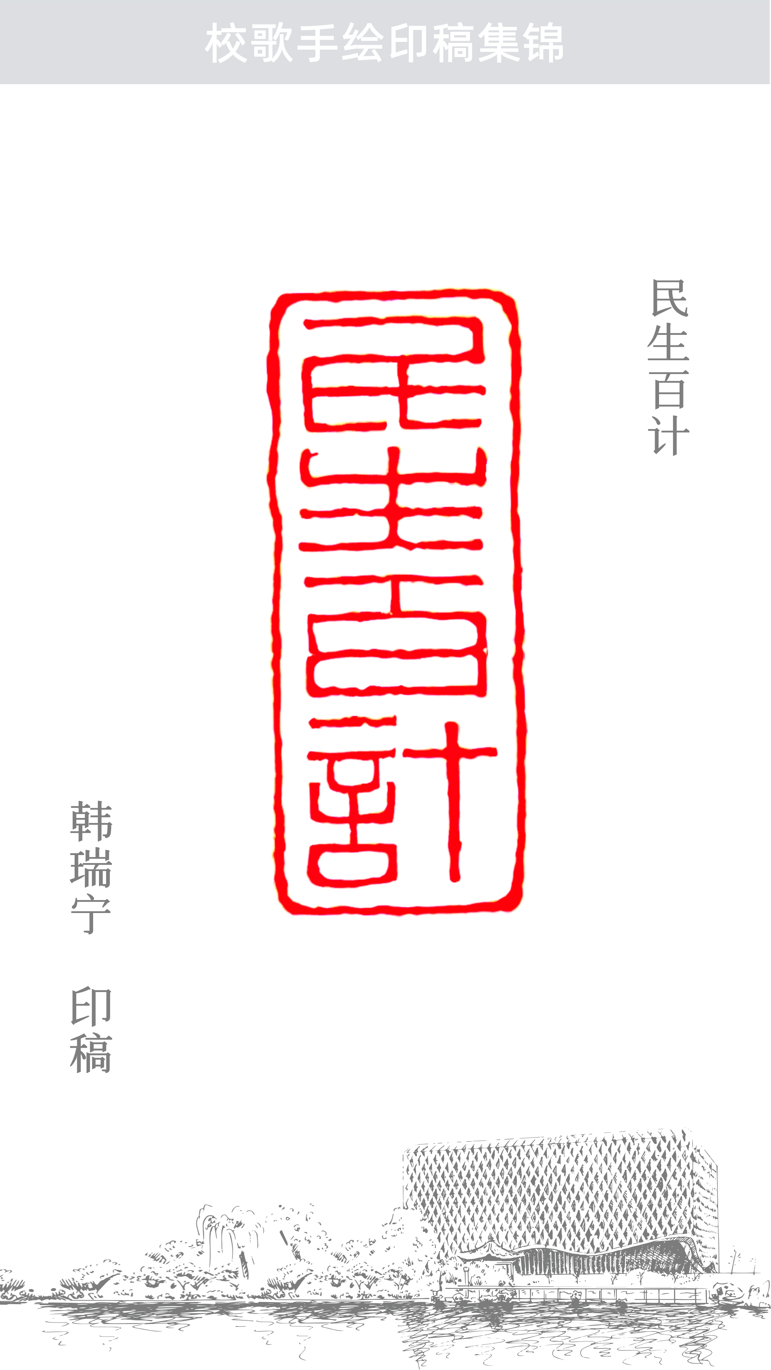 建大百年,成就百年树人,弘扬传统,展建大之魂。我们努力,在学习篆刻中,坚韧不屈,将校歌刻于石上,“民生百计”作为校歌的首句,引领了这百年的建大风尚。将其刻于石上,展现出建大百年的进程与未来,将像传统文化一般,丰富而有意义,继续引领我们继往开来,继续前行,不惧艰辛,以初心赴使命,如同篆刻一般,长久熠熠生辉。