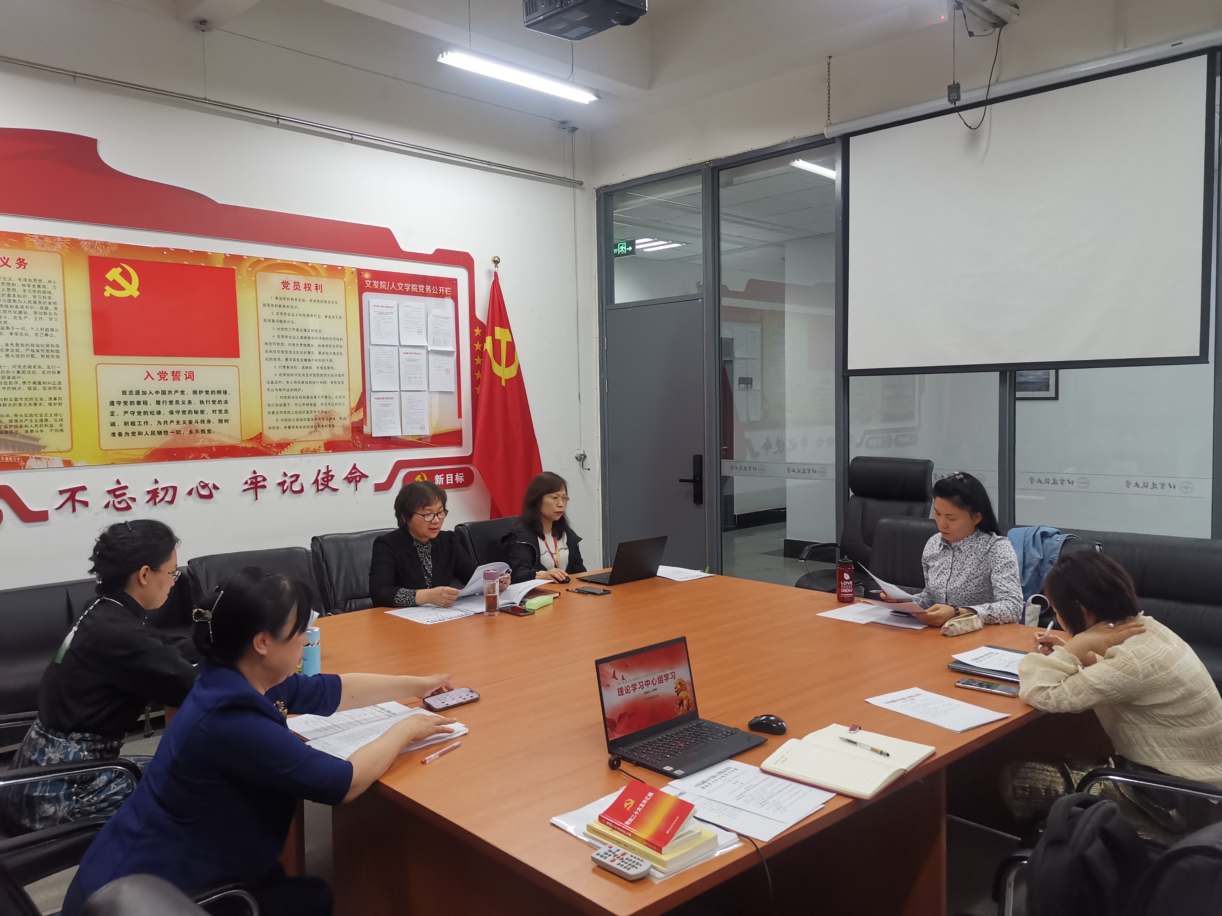 5月11日,文发院/人文学院党总支理论学习中心组开展“学习贯彻习近平新时代中国特色社会主义思想主题教育”专题学习活动。