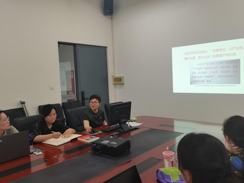 会议还传达了《关于认真学习领会习近平总书记关于全面加强党的纪律建设的重要论述扎实开展党纪学习教育的通知》精神。会后各支部分别围绕专题党课和前期的辅导报告分组开展学习研讨,交流心得体会。