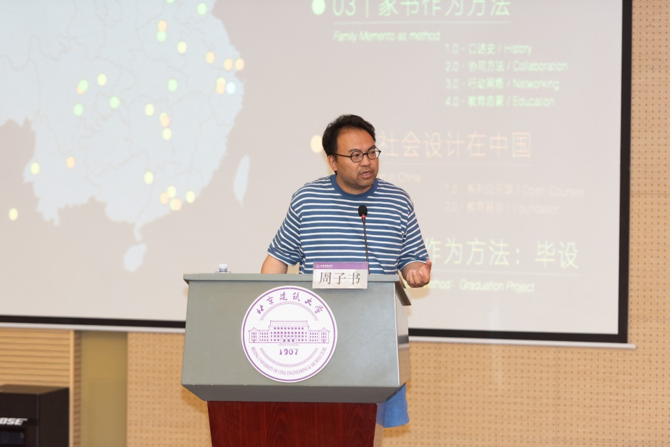 讲座伊始,周子书教授深入浅出地阐述了社会设计所融合的多学科知识体系,即艺术设计、社会学、人类学、社会工作与公共管理等,强调这一跨学科的综合性视角正是应对现代社会因效率、分工、分区、移动等因素引发的诸如孤独等关系疏离问题的关键所在,为在场师生开辟了全新的思考维度。在具体案例的精彩讲述中,周子书教授结合十余年来深耕社会设计领域的研究经验与在地实践,以2008年策划的中国美术馆“渡——国际应急建筑设计展”为起点,经由其硕士毕业设计“重新赋权——北京地下室的转变”,再到将其毕业设计延续至今的“地瓜社区”社区公共空间行动研究(构建“产销者计划”为核心的社区公共空间),逐步形成城市社区“温情的和附近的”社会支持系统,全面梳理了社会设计的行动逻辑与实践方式,详细解读了社会设计重视人、关注社会异质交互模型、将社区作为方法论单元、将社会过程作为分析方法的重要特质。周子书教授还分享了“家书作为方法”“家乡作为方法”,引导在场师生从自身实际出发,深入挖掘个人与社会问题的内在关联。讲座最后,周子书教授结合自身陶艺实践经验启发并鼓励师生们找到专业支点和保持成长耐心,并对师生们提出的问题进行了细致的回答。