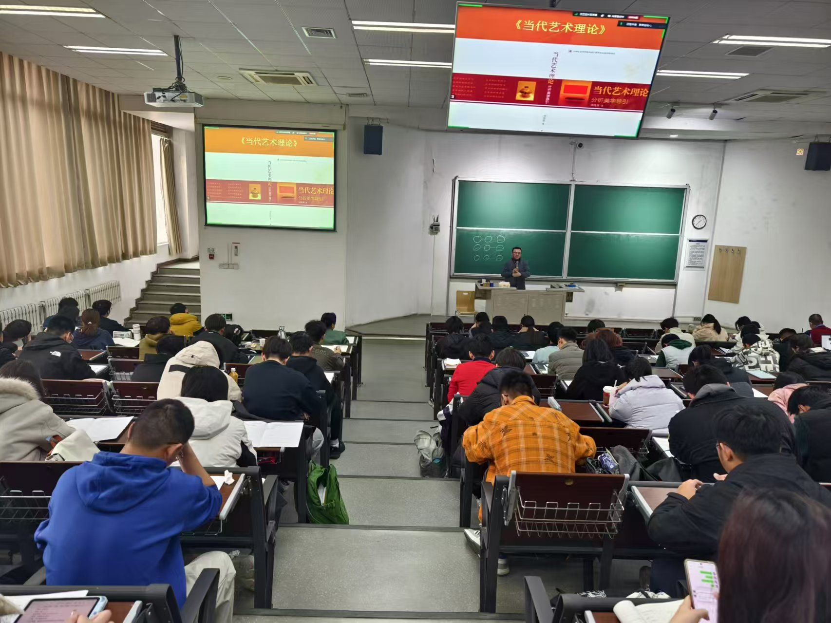 讲座重点围绕“艺术到底是什么”展开分析。从杜尚的作品入手,刘教授提出艺术作为开放性概念,其定义需要不断更新。他详细讲解了“艺术界”理论、“惯例性”艺术定义、“历史性”艺术定义,以及艺术作为“丛概念”的核心观点。此外,刘教授通过非洲土著头饰的实例,讨论了“非西方定义”的基本问题,如原始艺术是否属于艺术、功能与非功能的界限、文化与跨文化的碰撞等。关于“艺术经验观”,刘教授梳理了从古典到当代的“审美转型”、审美与判断的“二律背反”、艺术的“审美定义”等内容,层层剖析审美与非审美的争论。在讲解过程中,刘教授善用生动的例子将复杂的艺术理论通俗化,激发了同学们的学习兴趣和思考热情。