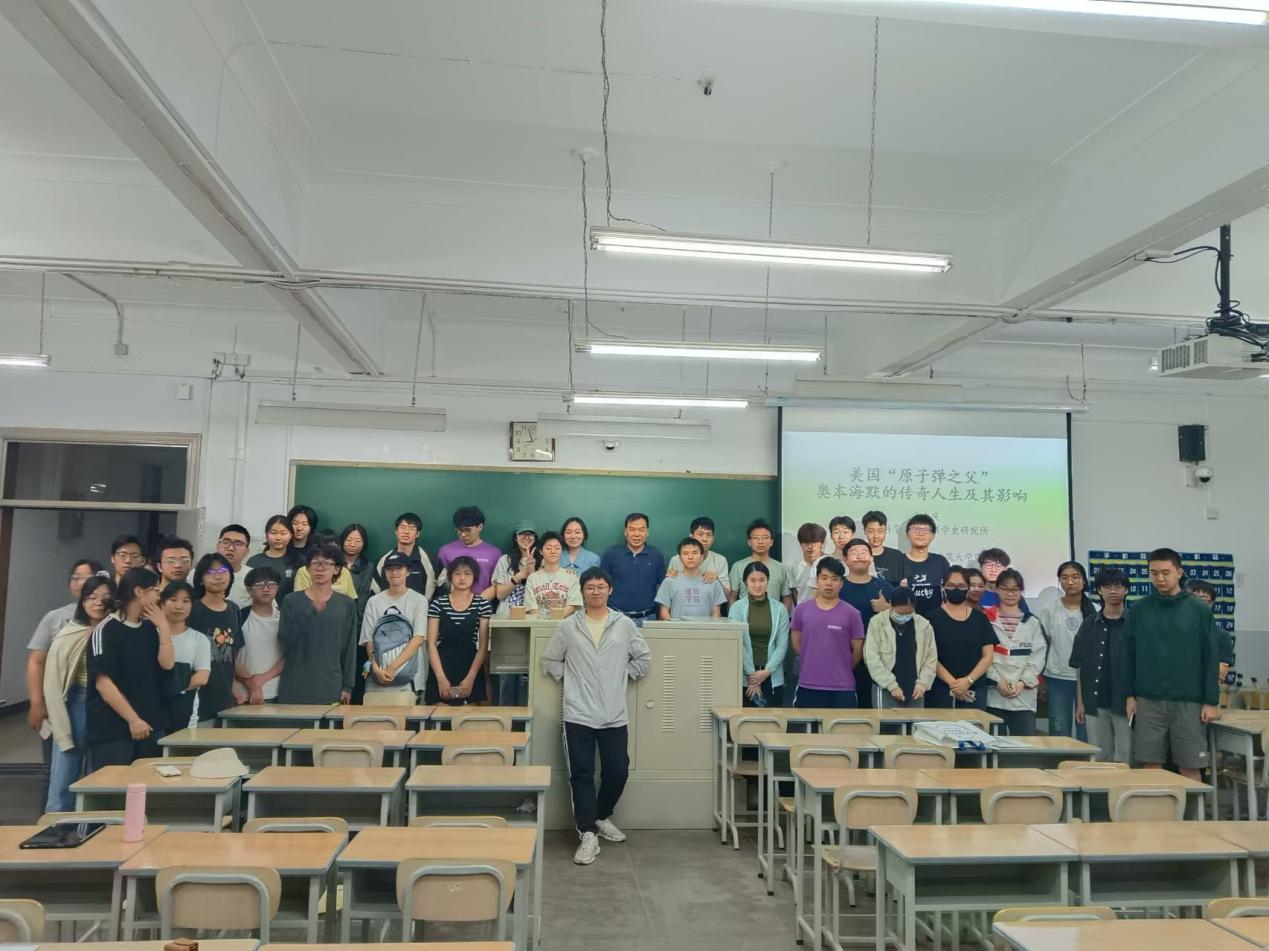 同学们认真聆听了讲座,既接触到了与原子弹有关的原子结构、聚变裂变、链式反应等知识,又了解了诸多知名科学家鲜为人知的性格特点、名人轶事等,非常有收获。今年也是中国首颗原子弹研制成功40周年,方老师和黄老师希望同学们通过对比,能够更加了解中国白手起家研制原子弹的艰辛历程,体会和学习两弹一星功勋科学家群体的家国情怀、无私奉献精神。