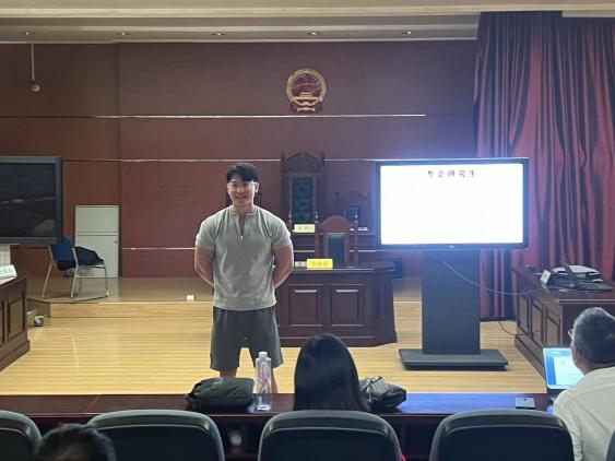 研究生自我介绍环节中同学们通过风趣幽默、充满活力的方式轮流上台进行了自我介绍。新同学来自五湖四海,有着网球、健身、羽毛球、跑步等丰富多彩的兴趣爱好,同学们对自己的未来有着美好的憧憬和清晰的规划,有想学好英语走涉外法治方向的,有希望考下CPA去做金融或资本方向相关业务的,真正体现出新时代卓越法治人才的“复合型”“融合性”。