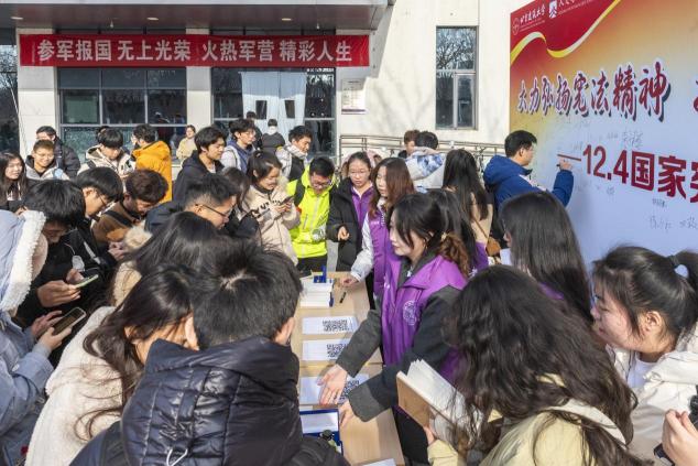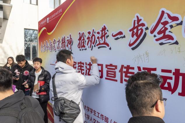 为深入学习和宣传宪法知识,考验师生们对宪法知识的掌握,进一步增强师生们的法治意识和宪法素养。在臻园食堂门口,开展宪法知识竞答活动,吸引200余名师生的积极参与。师生通过扫描二维码参与宪法知识竞答,其中题目涵盖了宪法的基本原理和主要内容,有助于帮助师生更加了解宪法。参与竞答后,在宣传板上签下自己名字,以此表达对宪法精神的认同和支持。同时,普法团队为参与活动的老师学生们准备了精美的答题礼品,深受同学们的喜爱。