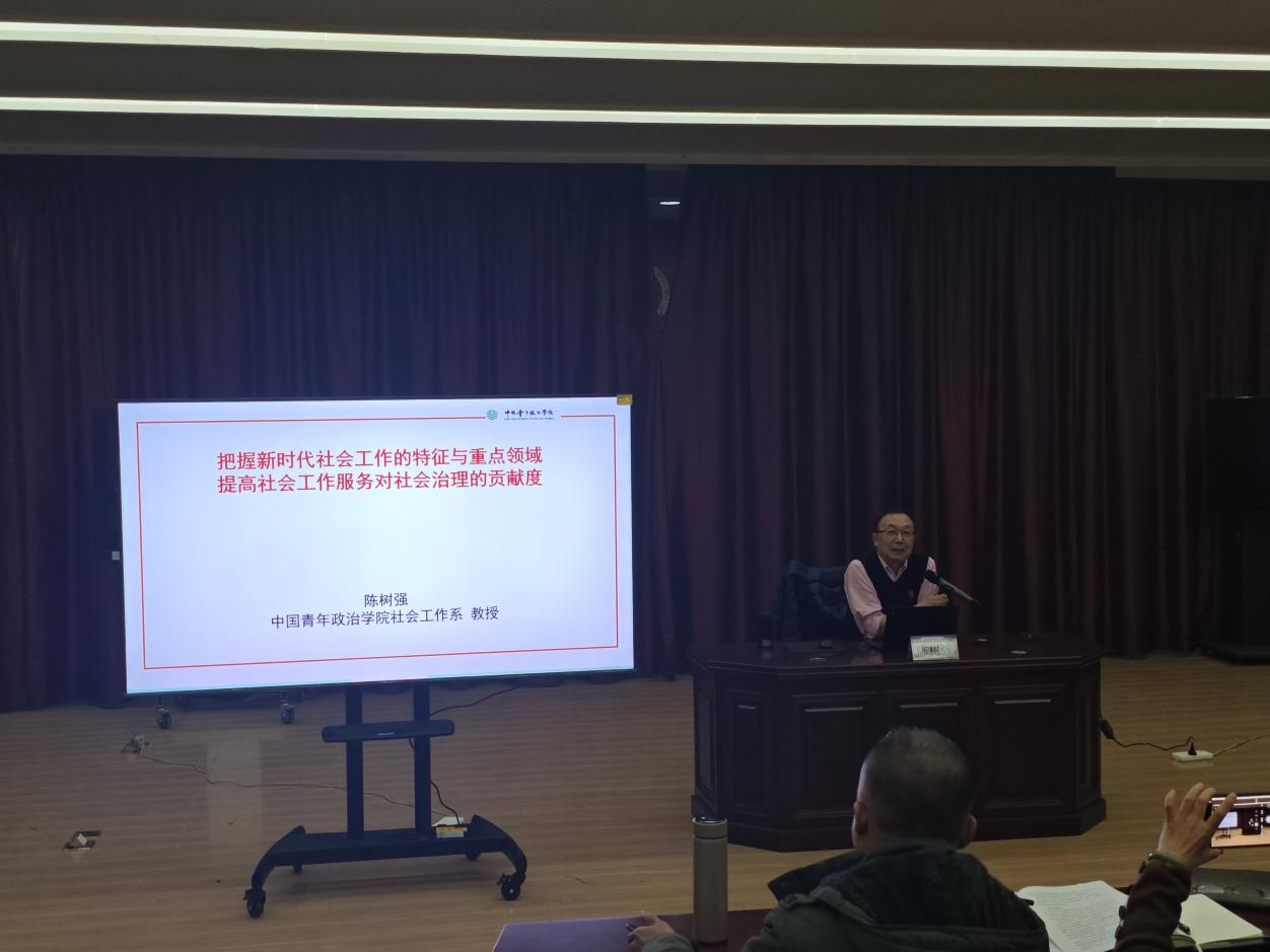 12月16日,中国青年政治学院社会工作系教授、博士生导师陈树强莅临我校,在基础教学楼D-118作题为“把握新时代社会工作的特征与重点领域 提高社会工作服务对社会治理的贡献度”的专题报告。催眠小说 党委书记孙冬梅主持报告会,社会工作专业全体师生参加。